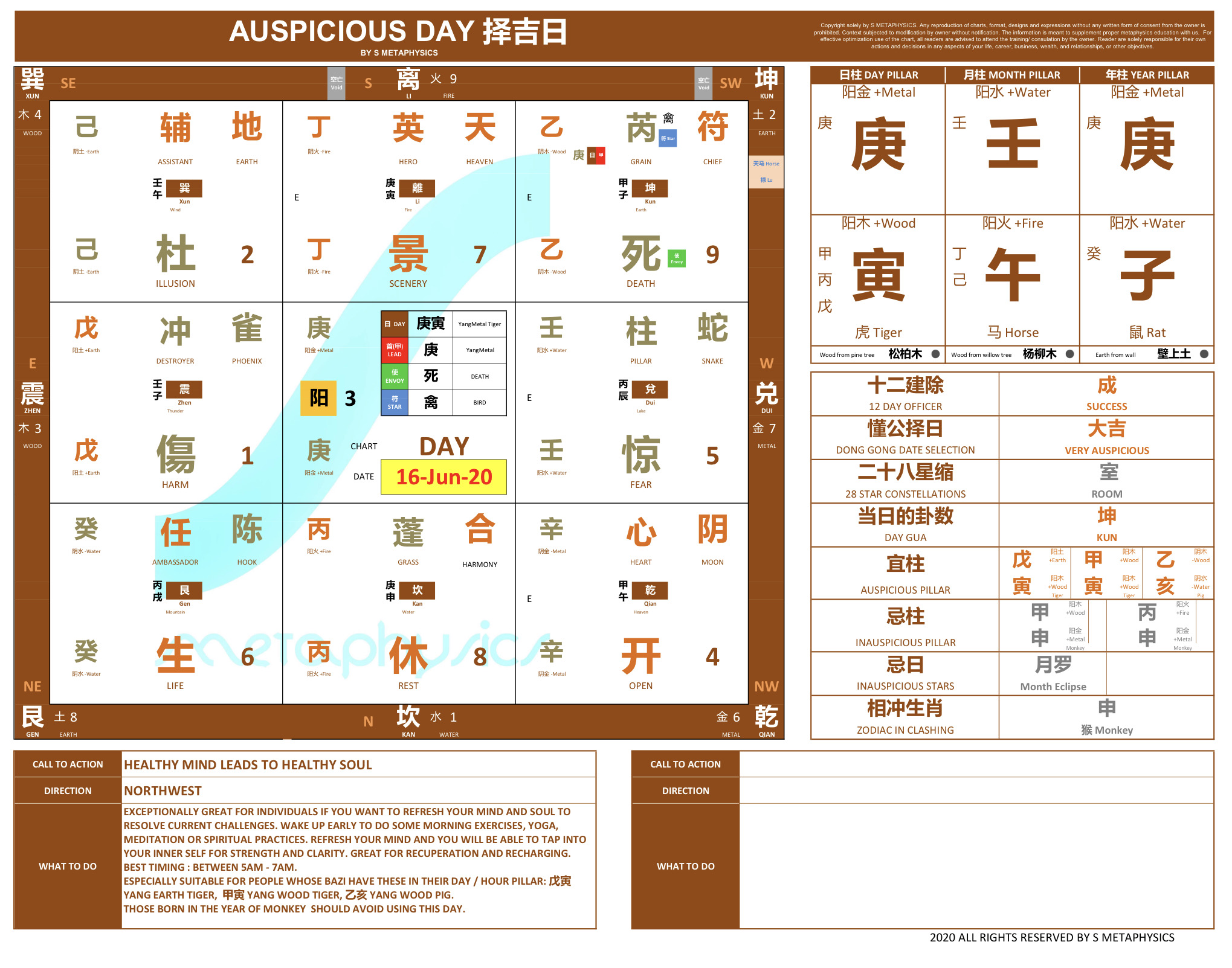 Goal: Healthy Soul, Healthy MindTime: 5am – 7amDirection : NorthwestAction : Wake up early to do morning exercise & meditationZodiac to avoid : Monkey